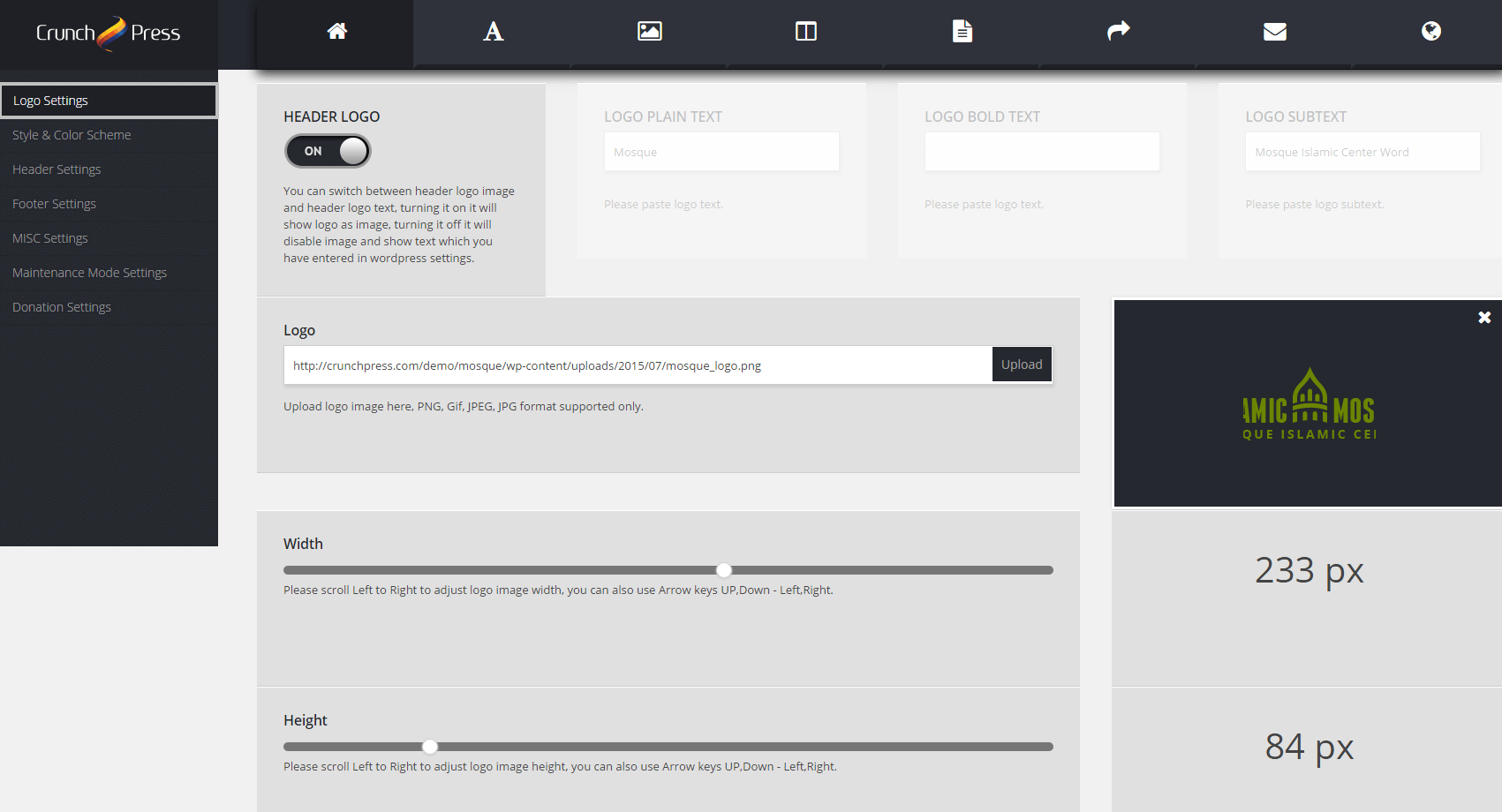 - Logo Type: You can easily switch between Image Logo or Text Logo.